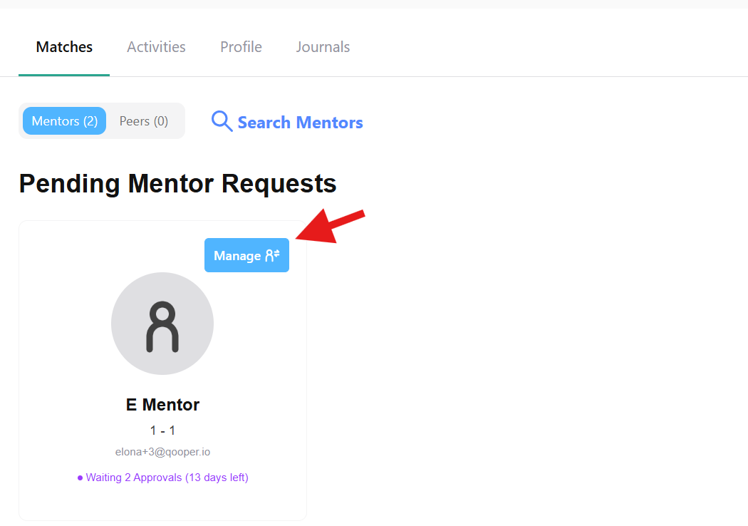 - Under Pending Mentor or Mentee Requests, click Manage