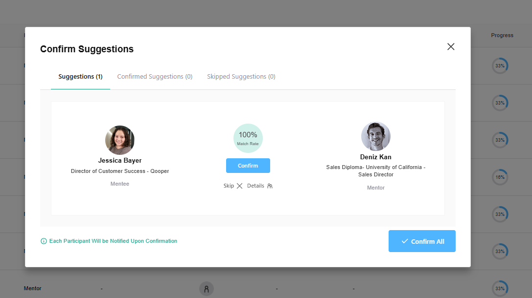 Suggest Type: Program admins can decide whether they would like to get 1:1 matches or Group matches based on their program goals.