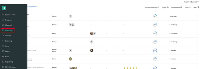Once logged in, go to the "Matching" page located in the admin dashboard, as shown in the image below.