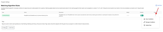 Conditional Matching rules are configured within the Matching Algorithm Rules section of your program settings.