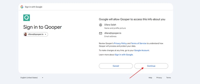 3- The Google access permission window will pop up. Click on "Allow" to connect your Google account with Qooper.