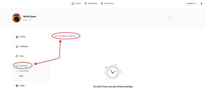 You can access your scheduled video call from the profile page of your match in the "Upcoming" tab under the "Meetings" section. Start your meeting by clicking on the "Join Video Call" button.